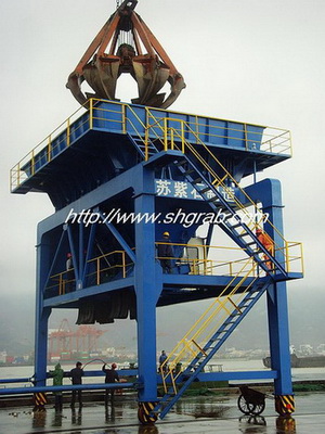 我公司設(shè)計的漏斗,主要用于裝卸煤渣、水泥粉、鐵精粉、糧食等散貨物料;可根據(jù)客戶的要求設(shè)計符合客戶需要的漏斗;漏斗上面可安裝除塵裝置、電動液壓門裝置、振動給料裝置,大大提高了裝卸效率。 移動漏斗可分為橡膠實心輪胎漏斗,鐵軌輪胎漏斗,此種漏斗可在碼頭上面用牽引車遷移到客戶需要的地方進行作業(yè)